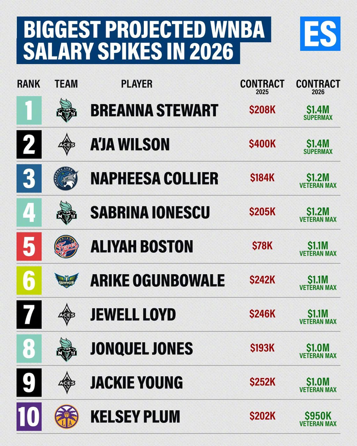 WNBA新劳资协议引爆薪资革命,顶薪球员年薪飙升